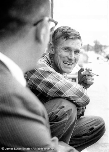 Wendell Hoffman, CBS film cameraman. Mt. Zion ruins, Longdale, MS, July 9, 1964 (1746A-B3)