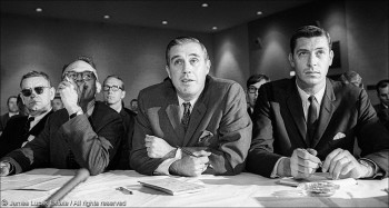 Newsmen, including Bill Minor (center), at the U.S. Subcommittee hearings, Heidelberg Hotel, Jackson, MS