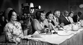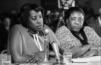 Mrs. Unita Blackwell and Mrs. Fannie Lou Hamer testify at the U.S. Subcommittee Hearings.