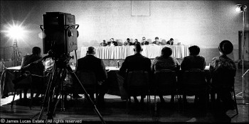 Newsfilm Cameramen at the U.S. Subcommittee Hearings on Poverty. Heidelberg Hotel, Jackson, MS.
